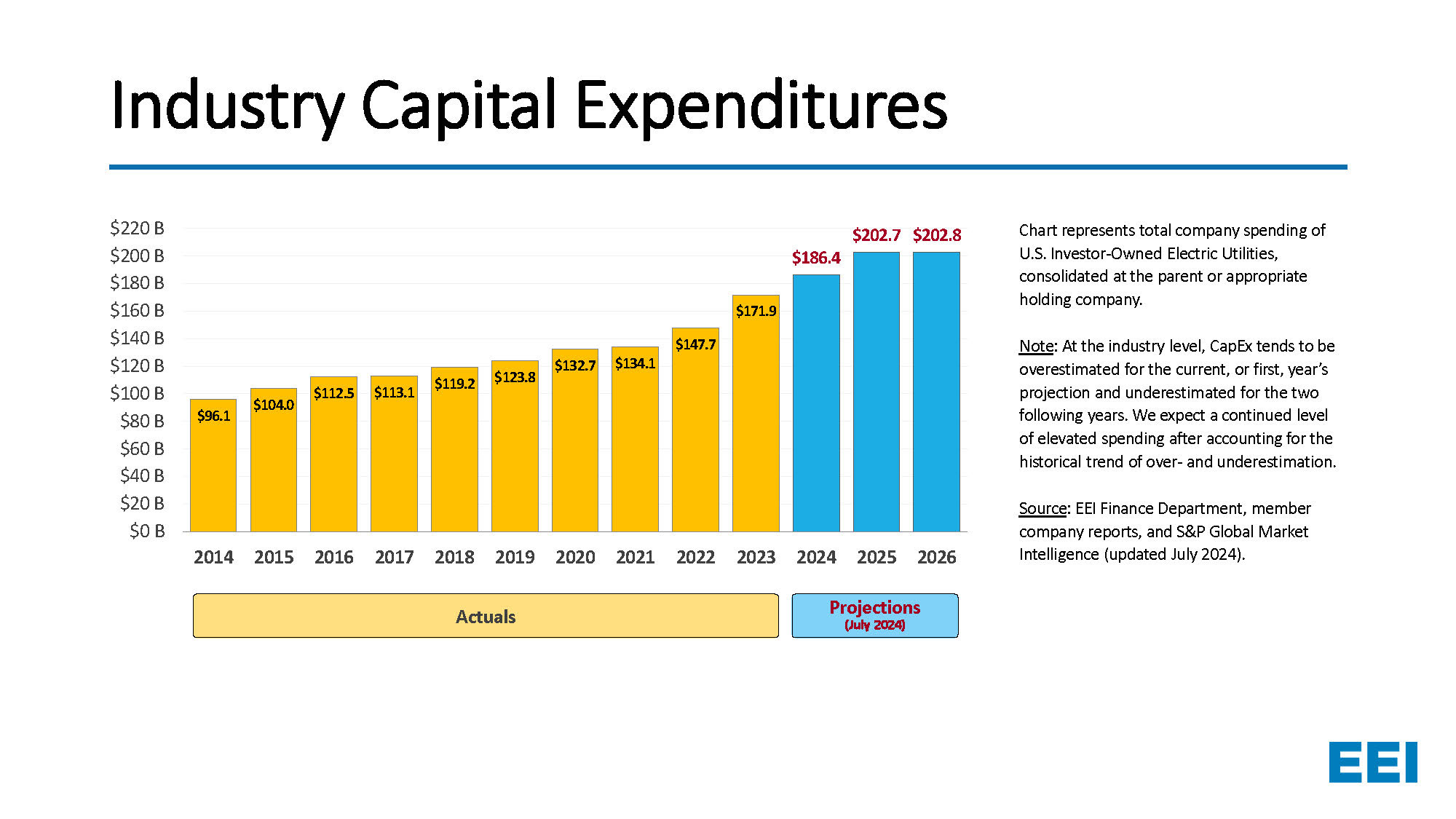 But even renewables-heavy companies are increasing investment needed to drive earnings and dividend growth. And it’s a sure bet Edison Electric Institute projections for 2025-26 CAPEX will fall short of actual spending, just as they have for past decade plus.