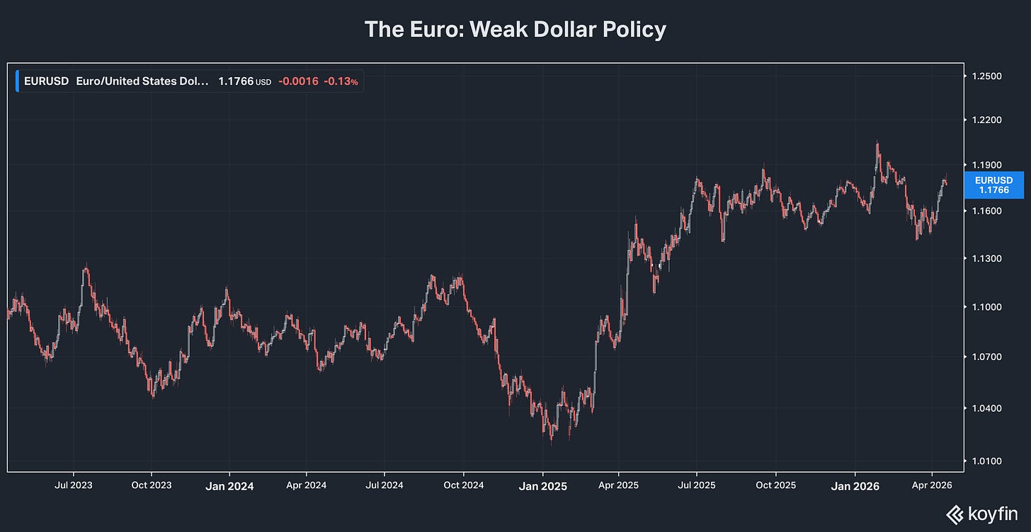 The Trump Administration’s never openly acknowledged weak dollar policy is another reason. Since the president took office, the US Dollar Index (DXY)—a basket of currencies—has slumped from over 110 to 98. Meanwhile, the Euro has risen from around parity over $1.18. And the British pound has moved from $1.20 to $1.40.