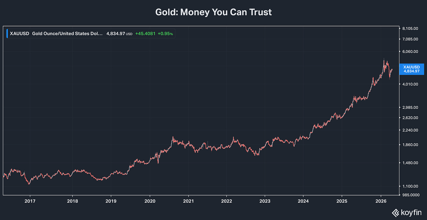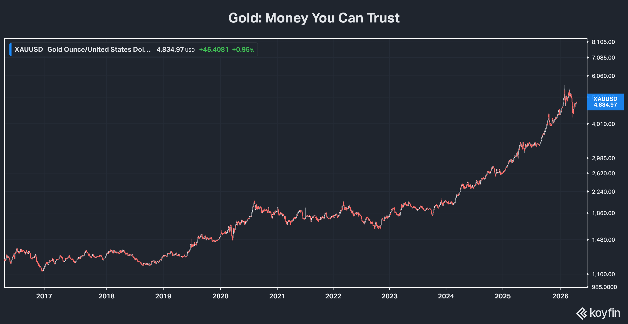 Gold’s rally on Friday—the day Iran’s opening of the Strait of Hormuz was prematurely announced—is a crystal clear sign there are other factors spurring the metal higher. And they appear to be strong as ever.