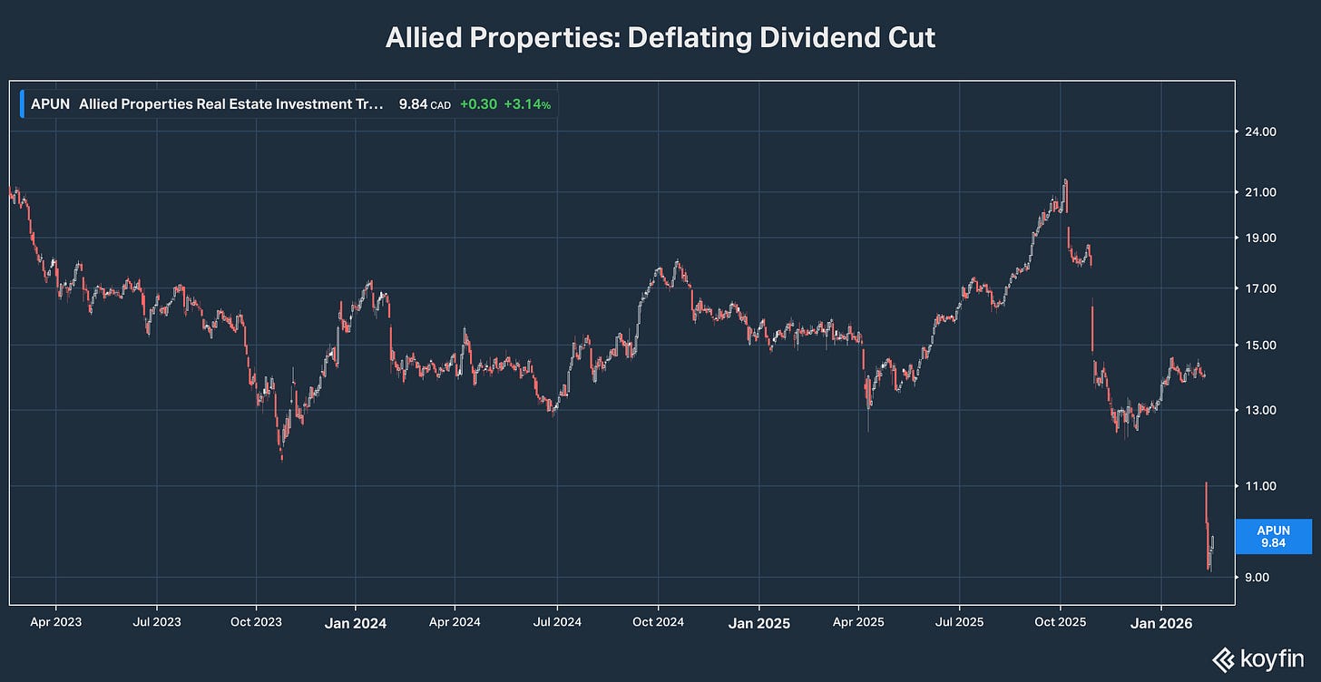 At the epicenter is leading life science landlord Alexandria REIT (NYSE: ARE), which issued 2026 guidance including a big first half drop in occupancy. And as a result, management’s guidance range for FFO is well below 2025 levels, still covering the reduced dividend comfortably but a clear indication the bottom for this business is still not in.