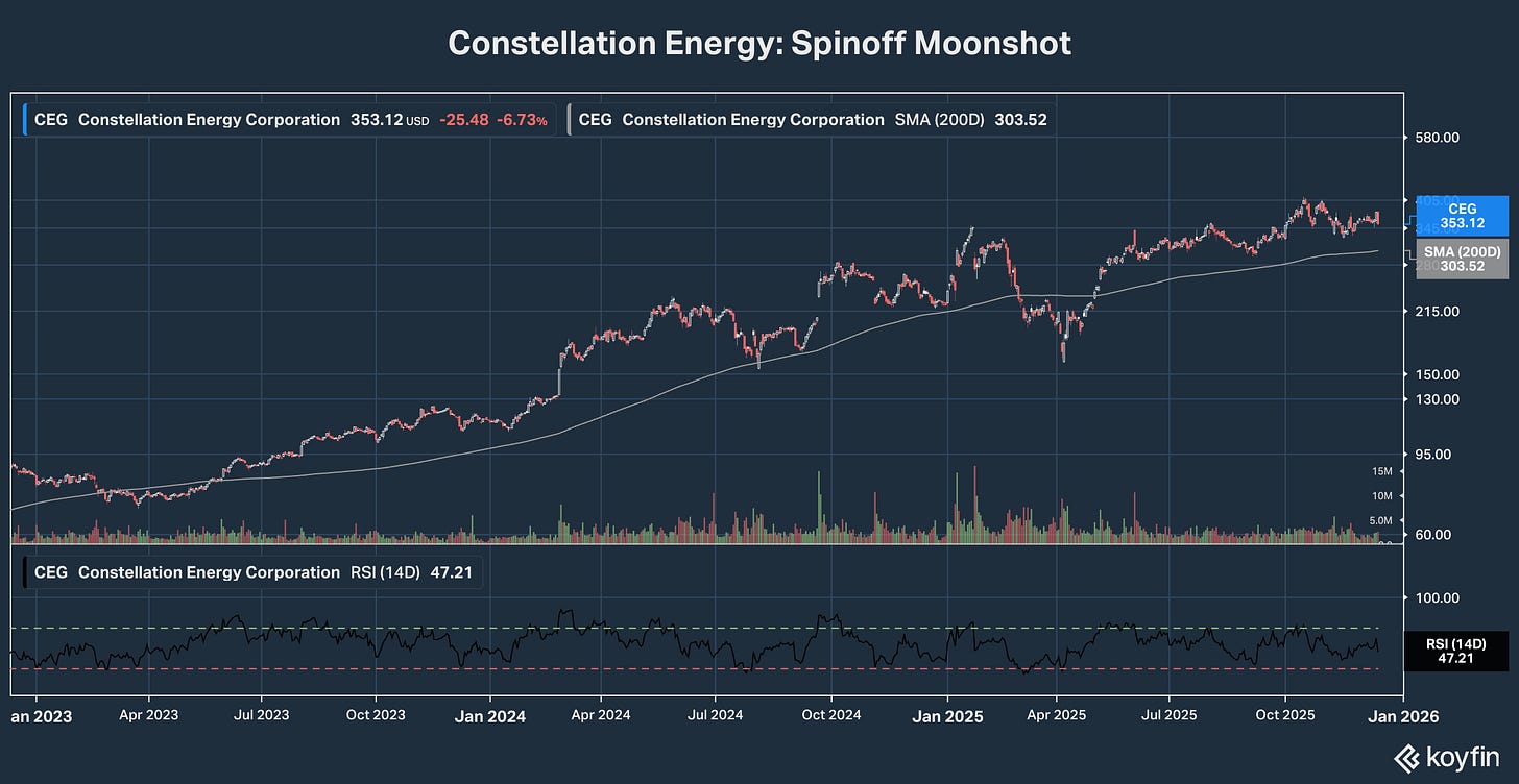 In early 2022, Exelon spun out those operations as Constellation Energy (NYSE: CEG). And the result is easily the most successful utility spinoff in history, an almost 20-to-1 moonshot at one point this year.