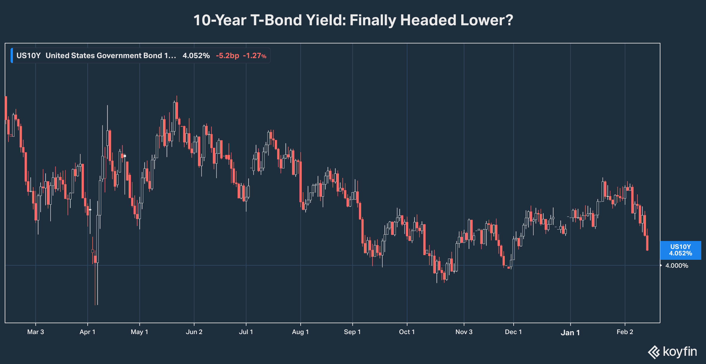 Gold’s push back over $5,000 an ounce last week is a pretty clear sign investors haven’t forgotten about inflation. But January Consumer Price inflation numbers released last week were more benign than many expected. And in response, the yield on 10-year Treasury bonds dipped to its lowest level in 2026 at just 4.05%.