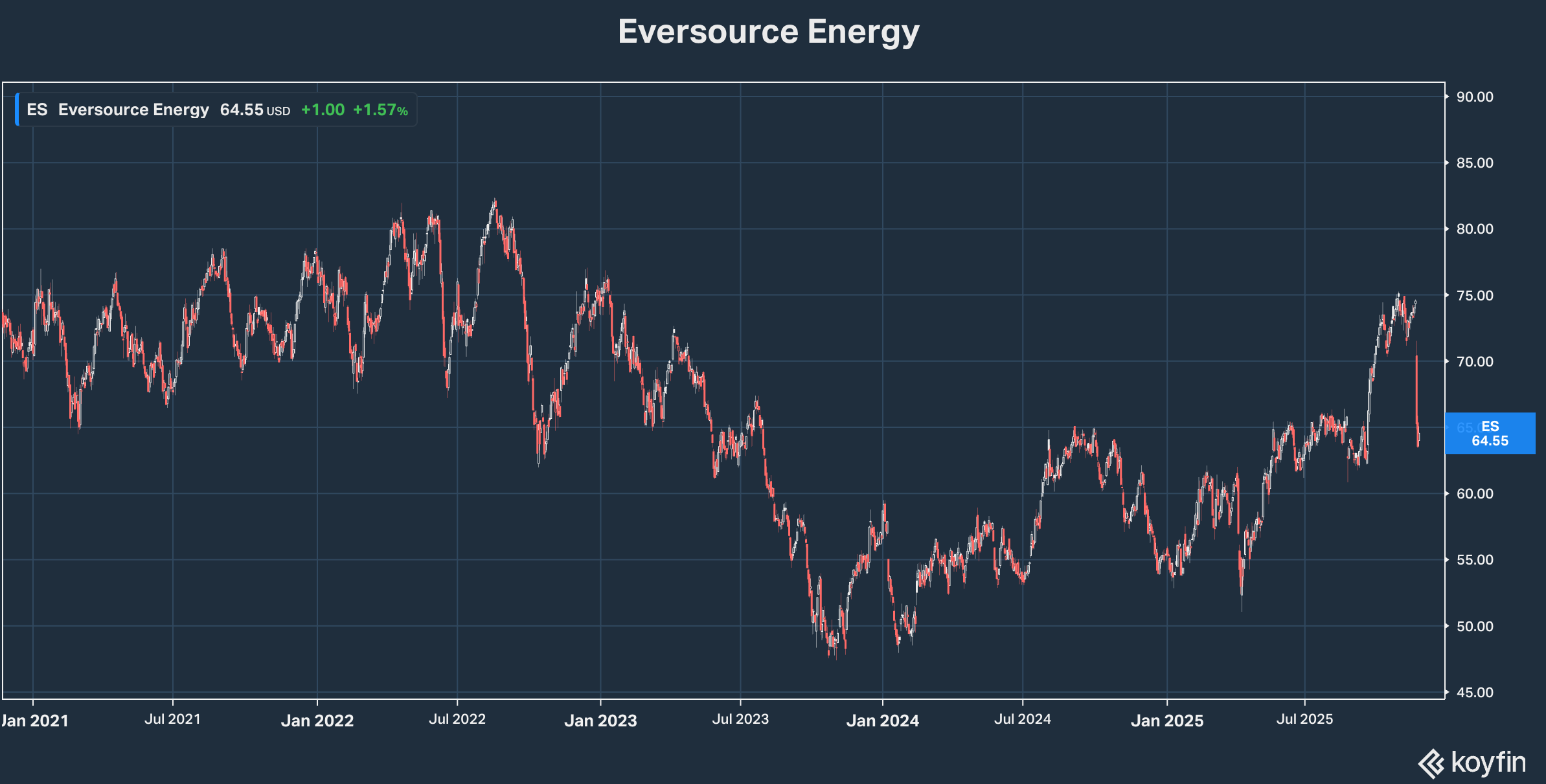 At this point, all three potential catalysts are still a work in progress. But starting with good news at Revolution Wind, we should see Eversource shares back trading in the 70s. And in the meantime—in stark contrast to NVIDIA—it’s pretty much priced for a worst case and then some. Easy to beat.