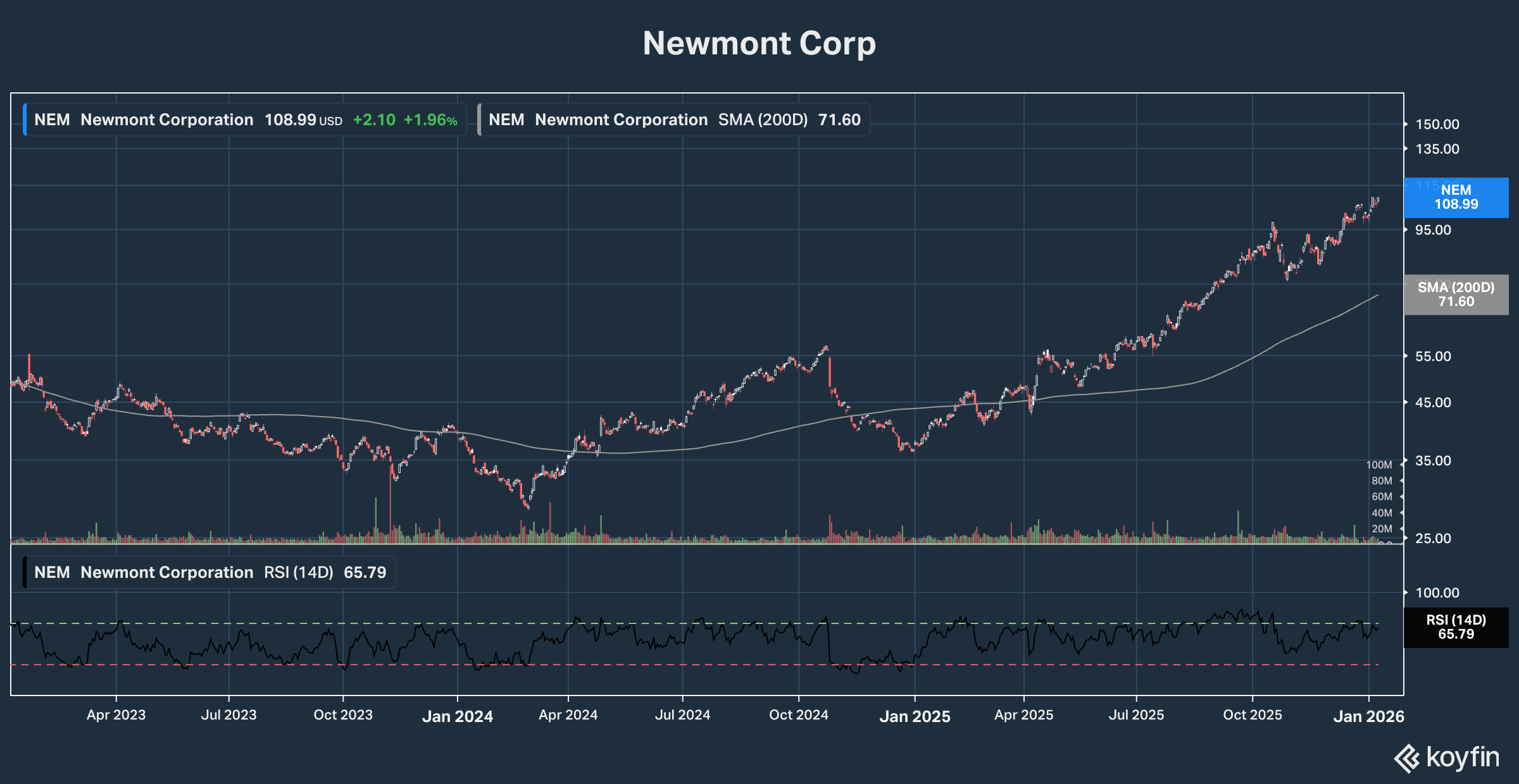 The flipside of increased expectations for inflation is stronger performance of commodities and materials stocks. NYSE-listed shares of BHP Group (ASX: BHP, NYSE: BHP) have gained strength since second half 2025. Gold miner Newmont Corp (NYSE: NEM) was a huge winner last year and it’s up another 10% so far in 2026.